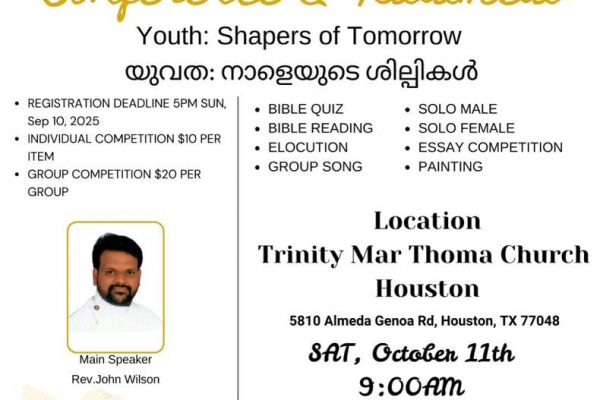 📣 South West Regional Yuvajana Sakhyam Conference & Kalamela 2025 🎶✍️🎤 Join us at Trinity Mar Thoma Church, Houston for a day of inspiration, fellowship, […]