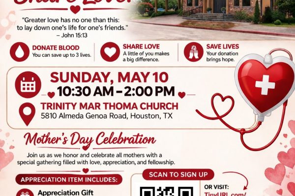 The Trinity Mar Thoma Yuvajana Sakhyam invites you to our Blood Drive on Sunday, May 10 🩸 ⚠️ Please note the time change ❤️ Give […]